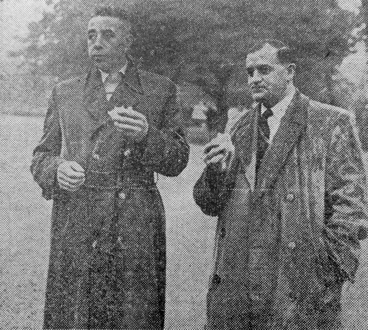 Undaunted by the rain, Mr. C. White and Mr.J. Gwatkins, of Conisbrough, are seen enjoying a snack during the Miners’ Demonstration on Saturday In Barnsley,