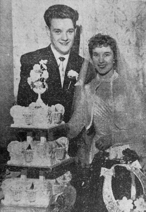 Mr H. A. Woffindon and Miss P. Birken cutting the cake
