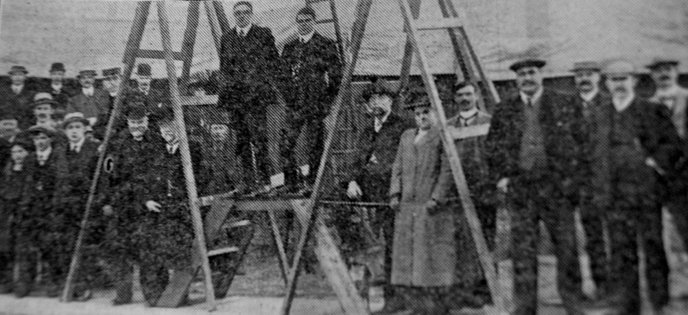 the picture, taken at the opening of the Denaby Swimming Baths last Thursday, contains the photos of several Denaby and Conisbrough well-known personages.