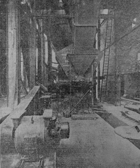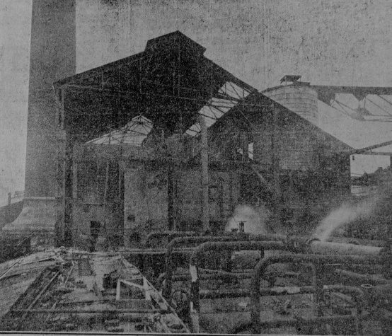 General view of the plant with the raw coal storage silo and the bridge on the right, which carries the screw conveyors bringing coal from the washer.