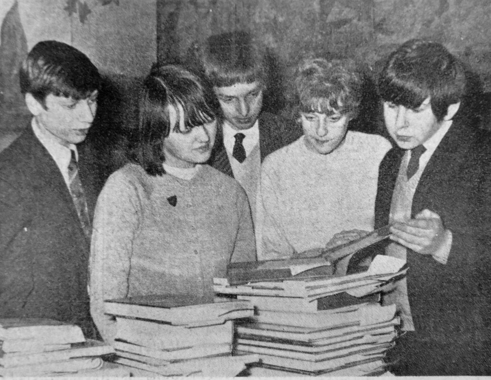 Students of Northcliffe High School, Conisbrough, take a look at the prizes before the school speech day.
