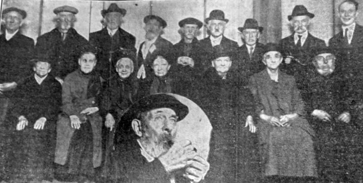 A group of old folk who were entertained at the old folks treat held in the Denaby Welfare Institute last Wednesday. Mrs. Frampton (third on the left, bottom row) is 88 and the oldest person in the urban district of Conisborough Mr. W. Wright (inset) is 87, and the oldest man.