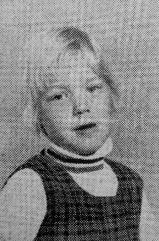 Little Pauline Mangham (5), of 26, Burcroft Hill, Conisbrough, her on her way to play school with her two sisters Denise (12), and Sharon (11), when the accident happened at Low Road, Conisbrough, only 100 yards from her home.