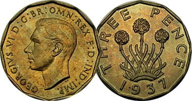 The new style threepenny bits, previously almost at a premium, received a white circulation at Conisborough and Denaby yesterday, when nearly 3,500 schoolchildren each receive one of the new coins as a Coronation gift from Amalgamated Denaby Collieries Ltd, proprietors of the local pits.