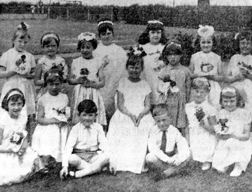 Gail Botwood, Rose Queen of Rowena infant School, Conisbrough with her attendants after her coronation on Thursday.