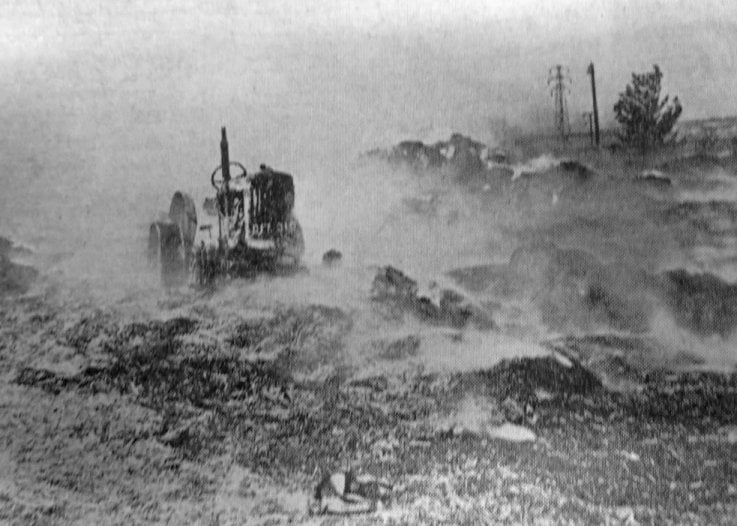Tractor driver was Cliff’s brother 25 year old Len Harrison. “ I tried to drive it out, but the flames surrounded it in no time”, said Len.
