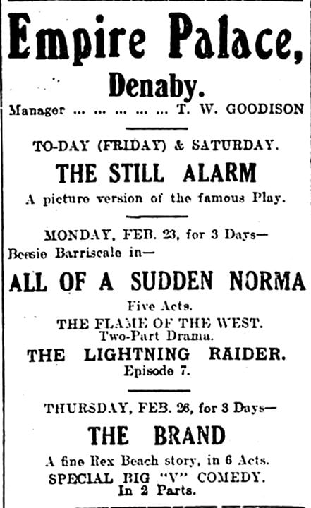 Cinema – Empire Palace – All of a Sudden NormaFebruary 1920Mexborough and Swinton Times February 21, 1920