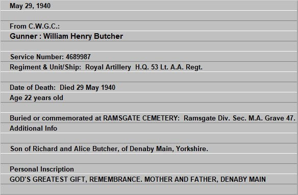 Soldier – Butcher, William Henry -Killed – C.W.G.C.