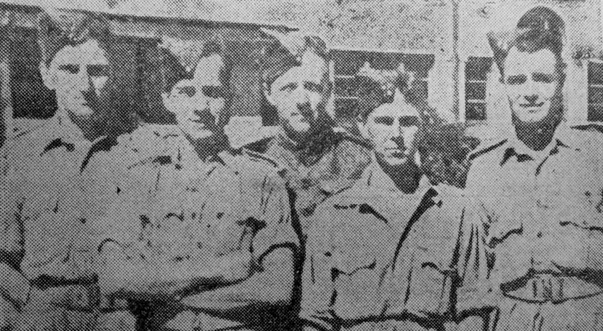 With him in the photograph shown is a Denaby man who was on the same gun as Gnr. Swindells, and Mrs. Swindells would be pleased to hear from either the man himself or his parents Gnr. Swindells is second from the right in the picture but Mrs. Swindells does not know which of the other men is his Denaby pal.