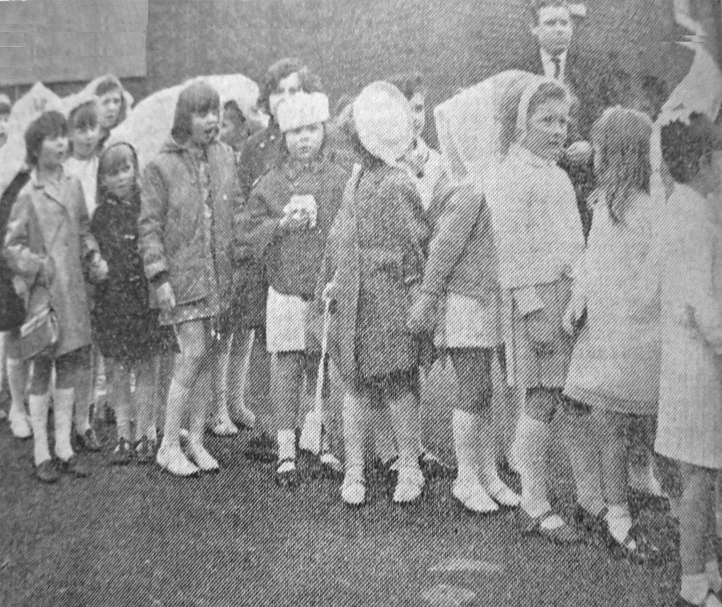 Children walking in the St. Alban’s Catholic Church May procession at Denaby.