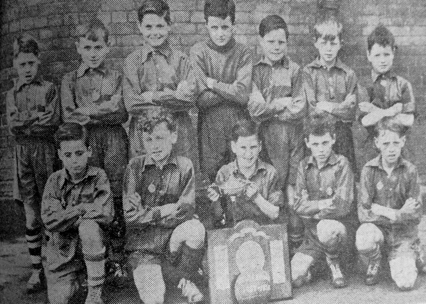 Pictured is the football team of Denaby St. Alban’s School with the cup and Shield they have won in the past season in the Don and Dearne League and Winner of Denaby United Supporters Club schoolboys championship.
