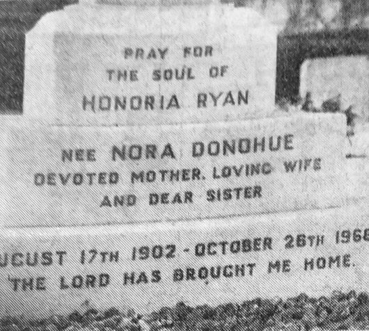 Now Nora Ryan — some will know her by her maiden name of Donohue — has had her last wish granted. A Celtic cross, specially made by an Essex firm, marks her resting place in Denaby Cemetery.