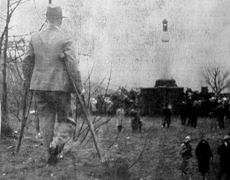 He said: We meet again to honour those who gave their lives in the war and to pray that peace may be established on a sure basis. The toll in this parish was great and many homes were left desolate. We bow our heads with sorrow and lift them with pride. We pray that never again shall we experience war, but that peace and happiness, truth and justice shall be established among us for all generations.