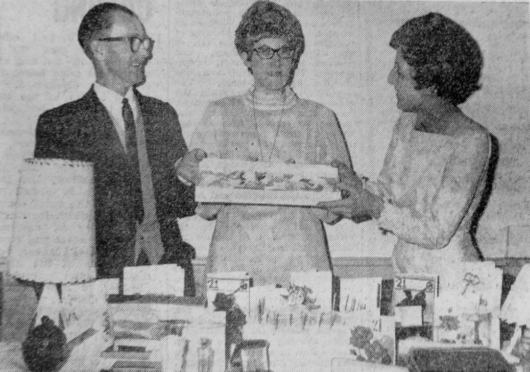 Miss Christine Preston, 50, Cadeby Avenue, Conanby, receives the “key to the door” from her parents at her 21st birthday party