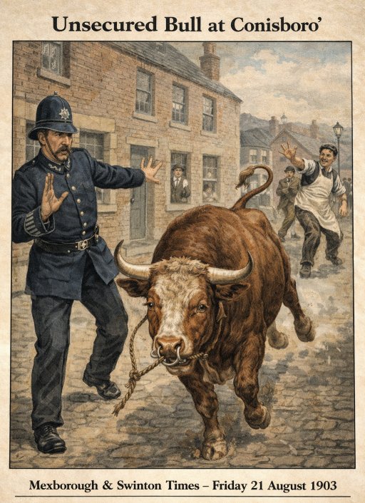 Wm. Revill, butcher, Conisboro’, was summoned for allowing a bull belonging to him to be unsecured at Conisboro’ on the 8th August.