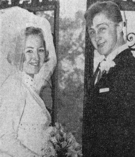 Miss D. Auty of Fox Inn, Conisbrough and Mr. C. White, of Church. Street, Conisborough, after their wedding at Conisbrough Parish Church on Saturday.