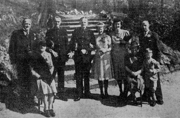 The bride’s mother was attired in a royal blue tailored woollen dress with accessories to match, while the mother of the bridegroom wore a pale grey costume, silver fox fur, with navy hat, gloves and shoes. The bridegroom’s gift to the bride was a gold wristlet watch, while to the bridesmaid he presented a gold pendant and chain. When the couple left for their honeymoon the bride was attired in a grey coat, navy tailored woollen dress, with navy hat, gloves and shoes. The bridegroom has been in the Forces since the outbreak of war, and received a tea service and case of cutlery from colleagues in the Royal Artillery.
