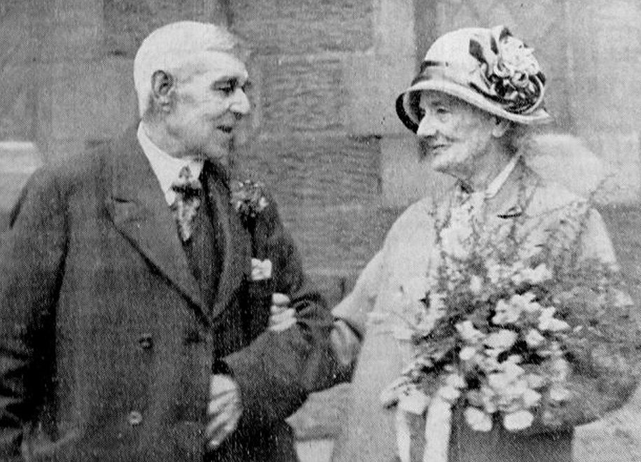 Harry Salmons (74), of Denaby and Mrs. Eliza Kelsall (84), of Conisborough, leaving the Denaby Parish Church after their wedding yesterday.
