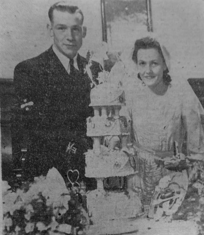 Best man was Mr. H. Faller and groomsman Mr. A. Thackray. Gifts included one from workmates of the bride at Doncaster.