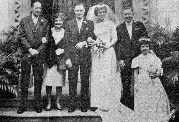 Retired Conisbrough school teacher Mrs Edith Lovell, was in Hong Kong for the wedding of her son Gerald to Miss Sybil Heaver Ridgway, formerly of 31, Blythe Road, Maltby, and when she returns to her home in Park road, Conisbrough, this month, she will bring with her a tape recording and cine film of the ceremony.