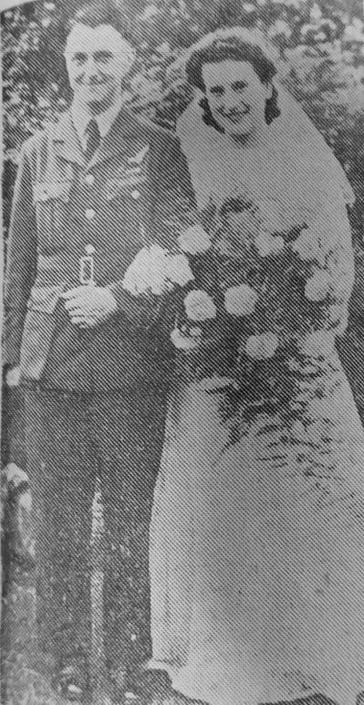 The bride was presented with silver horseshoes by her two cousins, Sally and Irene Stones, and by the small attendants. Later, Mr. and Mrs. Brown left for Amesbury, Wiltshire. They were the recipients of many gifts. The bride has been serving with the W.A.A.F. for some time, and the bridegroom has just completed 70 operational flights. In his speech at the reception the best man Cpl. Chipperfield, informed the bridegroom that he had brought the good news that he had been mentioned in despatches for his good work, and the bridegroom received the congratulations of the whole company.