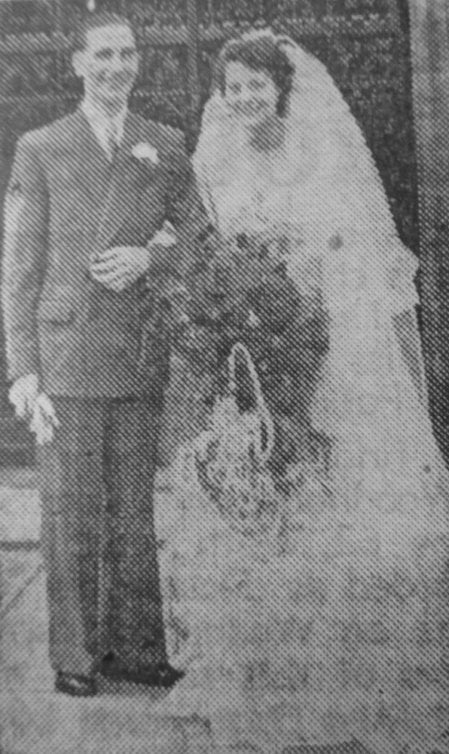Best man was Mr. C. Rhodes, and groomsman Messrs. A. and S. Tonks. A reception was held after the wedding in the Welfare Pavilion, Conisbrough, the brides mother wearing turquoise, with blue accessories.