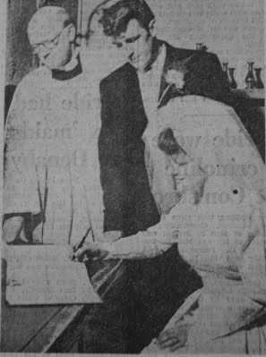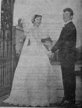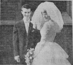 Miss M Storry (Hexthorpe) and Mr. T.C. Chadburn (Conisbrough) after their wedding at St Jude’s Church, Hexthorpe Mr Barrie Moxon and Miss Freda Hinchliffe at Conisbrough Mr George R. Cotton and Miss Carol A Setters at Conisbrough Parish Church Miss Eva Street and Mr Horace Lee, both of Conisbrough after their wedding at Doncaster Register Office
