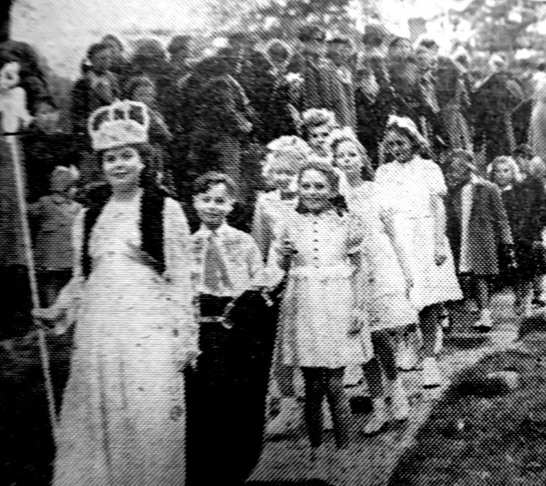 The grounds of Conisbrough Castle on Whit Monday saw the arrival of the retiring Sunday School Queen, Miss Doreen Swift, and her attendants,